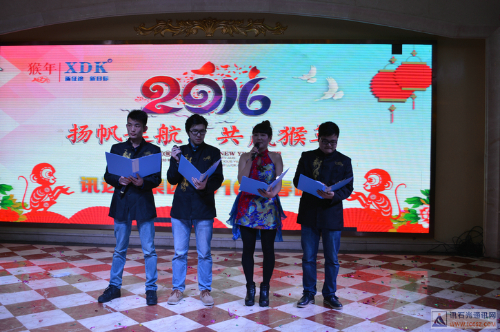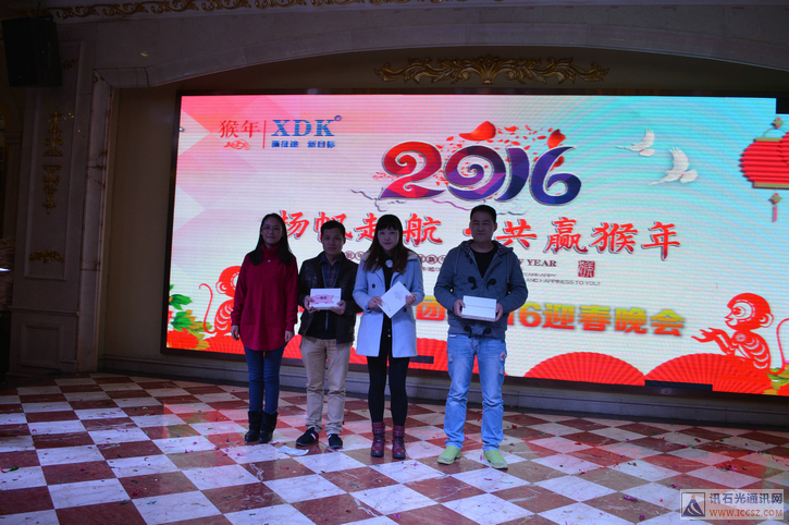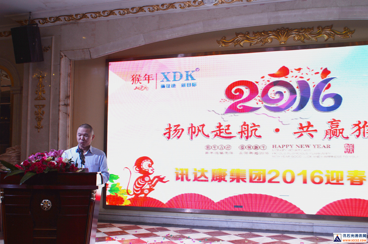 ICCSZ訊 2016年1月29日,訊達(dá)康通訊設(shè)備(惠州)有限公司(下稱“訊達(dá)康”)在惠州金諾國(guó)際酒店隆重舉辦以主題為“揚(yáng)帆起航·共贏猴年”的年會(huì)!參加本次訊達(dá)康年會(huì)的公司員工與應(yīng)邀出席嘉賓共計(jì)六百余人?,F(xiàn)場(chǎng)一片熱鬧歡騰的景象,讓人沉浸在新年的喜慶中!