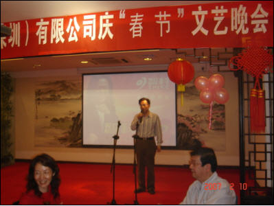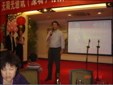 2007年2月10日晚六點左右,無限光通訊工廠附近"憶江南"餐廳里成了歡樂的海洋。無限光通訊(深圳)有限公司慶“春節(jié)”文藝晚會在此舉行。無限光通三百多員工齊聚在此聯(lián)歡,慶祝新年的到來。訊石作為光通訊唯一一家咨詢公司,一直以來也是無限光通好朋友,應(yīng)邀參加了本次聯(lián)歡晚會。
