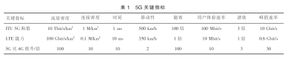 我國IMT-2020(5G)推進組分析了驅動5G發(fā)展的移動互聯(lián)網(wǎng)和移動物聯(lián)網(wǎng)兩類業(yè)務需求,提出了包括6項性能指標和3項效率指標的“5G需求之花”,定義了廣域覆蓋、熱點覆蓋、低功耗大連接物聯(lián)網(wǎng)和低時延高可靠物聯(lián)4類5G主要應用場景。ITU將5G需求和應用場景主要分為3類:增強的移動寬帶(eMBB)(將我國提出的廣域覆蓋、熱點覆蓋歸為此類)、海量連接的機器類通信(mMTC)、超可靠和低時延通信(cMTC)。同時定義了8項關鍵技術指標,表1中列出了5G相對4G的各個關鍵能力提升的倍數(shù)。