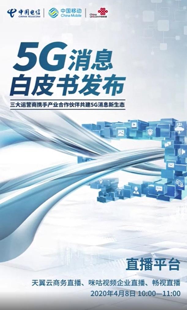 ICC訊 4月4日,中國(guó)聯(lián)通、中國(guó)移動(dòng)與中國(guó)電信等三大運(yùn)營(yíng)商宣布,將于4月8日10:00聯(lián)合發(fā)布5G消息白皮書。