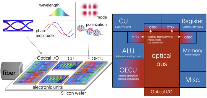 在這個全新的系統(tǒng)中,光子、電子及光電子技術(shù)在芯片上的優(yōu)勢互補(bǔ)和計(jì)算單元之間以及單元與外界的高速光電互連形成硅基光電計(jì)算的基礎(chǔ),這是最終獲得實(shí)用性超高性能計(jì)算的關(guān)鍵。