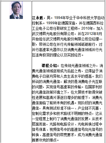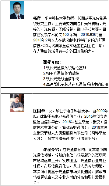 中國光學工程學會聯(lián)合工業(yè)和信息化部人才交流中心、華中科技大學于2018年9月13日至15日在武漢舉辦“2018光通信器件及系統(tǒng)技術培訓”將為工程人員提供器件和系統(tǒng)技術前沿發(fā)展進展和實例分析。拓展視野,增加受訓人員實例經(jīng)驗,搭建合作平臺。
