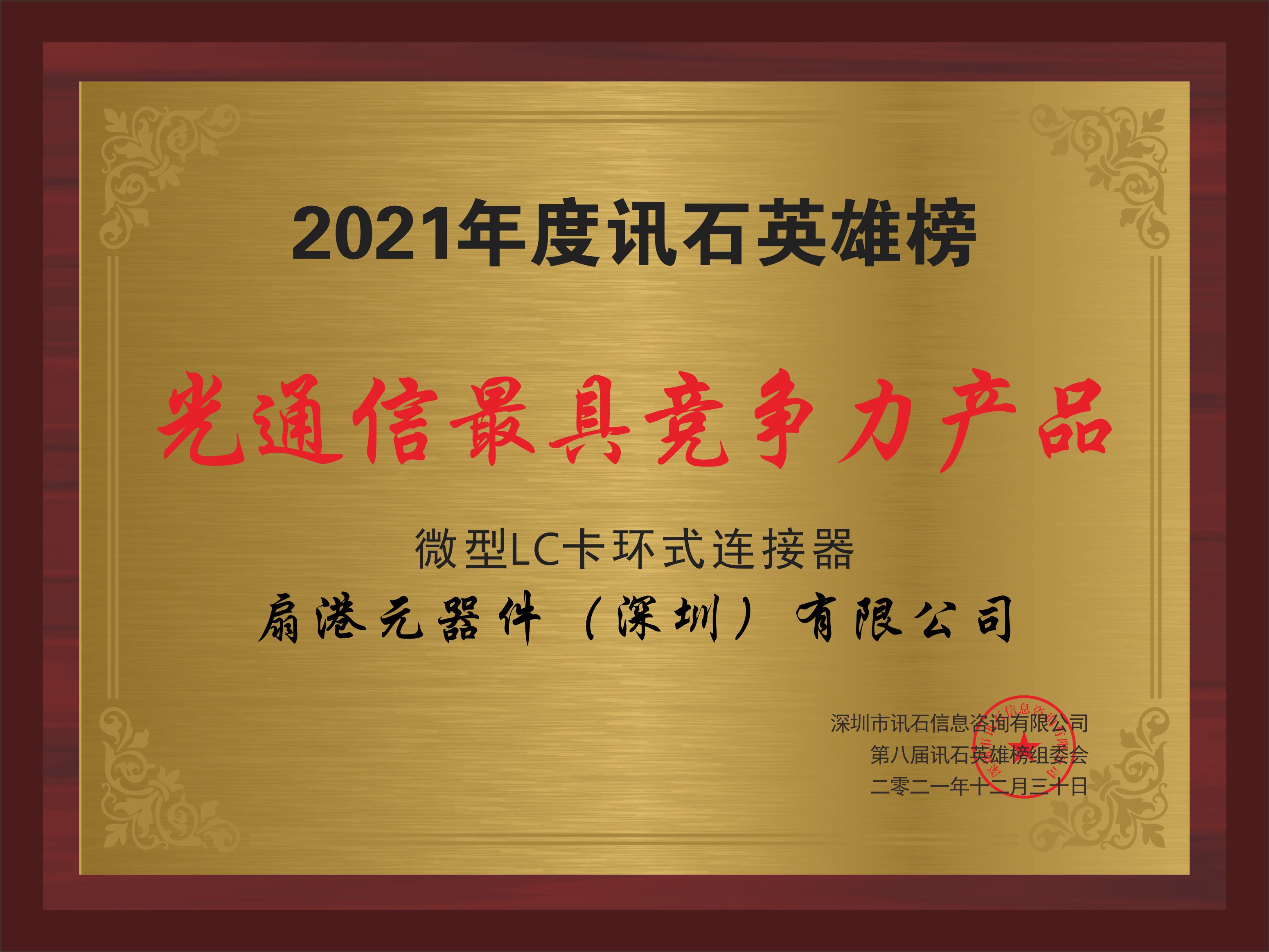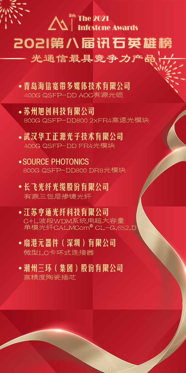 喜訊,1月11日訊石發(fā)布“2021年度訊石英雄榜”四大獎項榜單,來自SENKO的微型LC卡環(huán)式連接器榮獲“光通信最具競爭力產(chǎn)品”獎項,感謝訊石平臺及市場對這款產(chǎn)品的認(rèn)可,我們將繼續(xù)努力,致力于推進(jìn)更好的光連接解決方案。