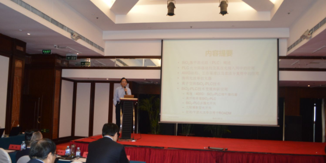 陳益新教授在這次會議上帶來了《集成光路器件原理、制造和測試技術(shù)》系列講座之《SiO2基光器件和集成光路》精彩內(nèi)容。他從SiO2基平面光路(PLC)的優(yōu)點和不足,PLC光分路器和AWG的結(jié)構(gòu)、工作原理以及應(yīng)用,SiO2-PLC在光纖放大器和光纖到戶系統(tǒng)中的應(yīng)用等方面展開,為觀眾全面系統(tǒng)地闡述了集成光路器件相關(guān)專業(yè)知識。