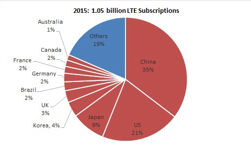 (LTE用戶國家分布,2015年)