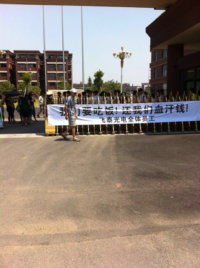 最新消息,現(xiàn)在飛泰光電的員工已經(jīng)成立了維權(quán)小組,正在為賠償金努力的準(zhǔn)備各種資料。因?yàn)檎?2日給出的承諾中告知可能沒有賠償金。