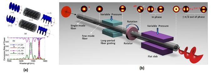 圖3(a)螺旋光柵結(jié)構(gòu)(b)全光纖OAM模式轉(zhuǎn)換器