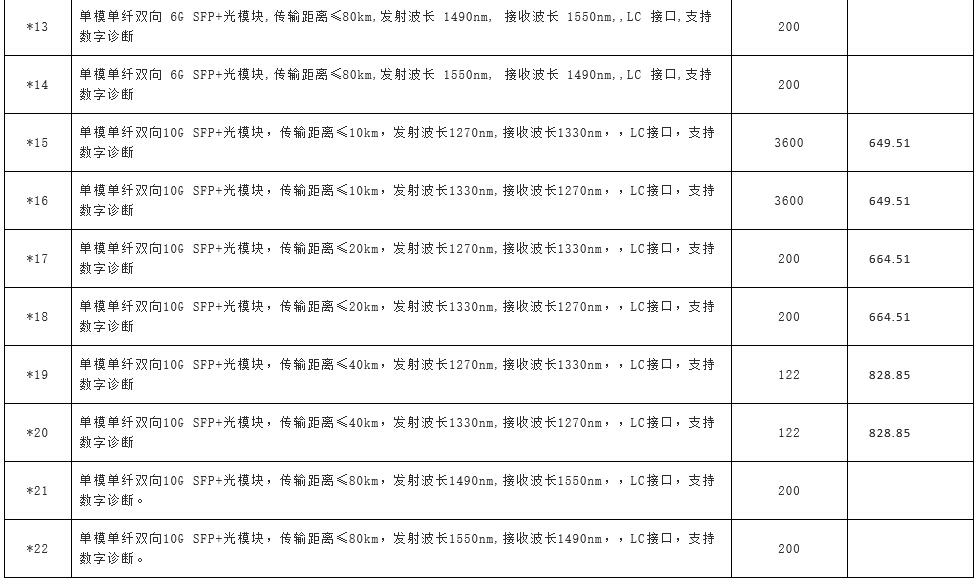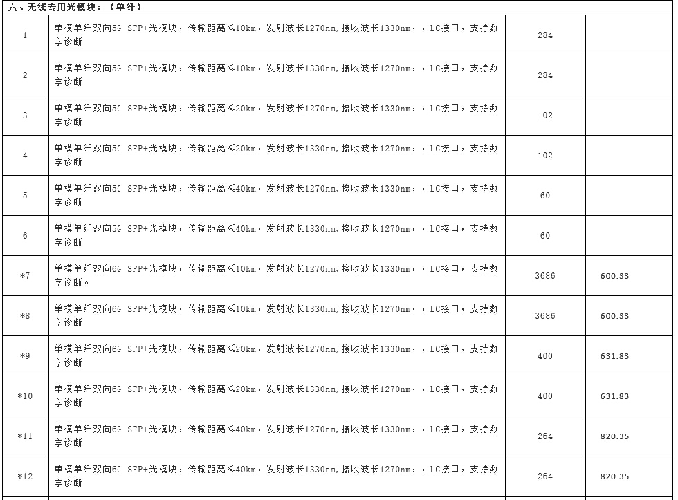 ICCSZ訊(編輯:Debi)5月6日,中國電信陽光采購網(wǎng)公布江西電信啟動2016年光模塊集采重新招標(biāo)項目,包含數(shù)據(jù)專業(yè)GE光模塊(雙纖雙向)、數(shù)據(jù)專業(yè)10GE XFP光模塊(雙纖雙向)、數(shù)據(jù)專業(yè)10GE SFP+光模塊(雙纖雙向)、數(shù)據(jù)專業(yè)100GE CFP2光模塊(雙纖雙向)、無線專用光模塊(雙纖)、無線專用光模塊(單纖)等六種規(guī)格的光模塊,共37364個。詳情如下: