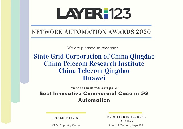 ICC訊 日,由Layer123舉辦的第三屆網絡自動化峰會在線上如期舉行。在本次峰會上,國網青島供電公司、中國電信研究院、中國電信青島分公司和華為憑借基于5G SA切片的智能電網項目,聯合榮獲“5G自動化最佳創(chuàng)新商業(yè)項目獎”(Best Innovative Commercial Case in 5G Automation Award)。