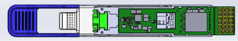 博創(chuàng)科技硅光模塊采用業(yè)界領(lǐng)先的7nm DSP芯片,硅光引擎一改傳統(tǒng)分立器件布局,采用2.5D封裝,單片集成了MZM調(diào)制器、硅波導(dǎo)、探測器、Driver、TIA等多個有源和無源芯片。集成后的芯片體積大幅減小,可以利用成熟的COB技術(shù)封裝到模塊內(nèi)部,大幅簡化光模塊的設(shè)計和制造,有利于規(guī)模化生產(chǎn)。