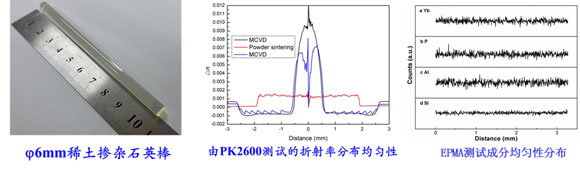 “十二五”以來,高功率激光單元技術研發(fā)根據(jù)上海光機所“一三五”總體發(fā)展戰(zhàn)略指引,在中科院“重點部署項目”的支持和牽引下,在國內率先開展了百微米纖芯直徑的大模場光子晶體光纖制備技術攻關,先后突破了大直徑低NA稀土摻雜石英玻璃芯棒的制備技術、空氣孔微結構光子晶體光纖的拉制技術以及相關的檢測和評估技術,建立和逐步完善了一整套有源光纖預制棒制備、光纖拉制及性能檢測平臺,為上海光機所培養(yǎng)了一支特種光纖材料研制方面的專業(yè)人才隊伍,為推動 “先進光纖激光與光子學技術”的學科發(fā)展奠定了關鍵材料的堅實基礎。