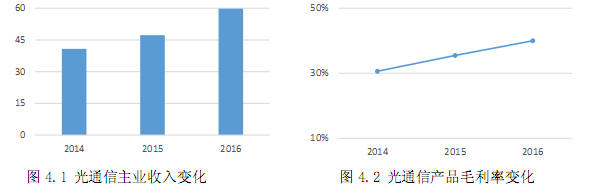 光通信業(yè)務(wù)連續(xù)多年實現(xiàn)收入和利潤的雙增長,主要得益于公司完整的產(chǎn)業(yè)鏈配套和包括光棒、光纖、光纜、光器件的自主研發(fā)與智能化生產(chǎn)優(yōu)勢,同時光通信行業(yè)繼續(xù)保持較高景氣度,光纖光纜市場需求旺盛,光纖市場供應(yīng)緊張致使產(chǎn)品銷售價格上升,提升了光通信產(chǎn)品毛利率水平。