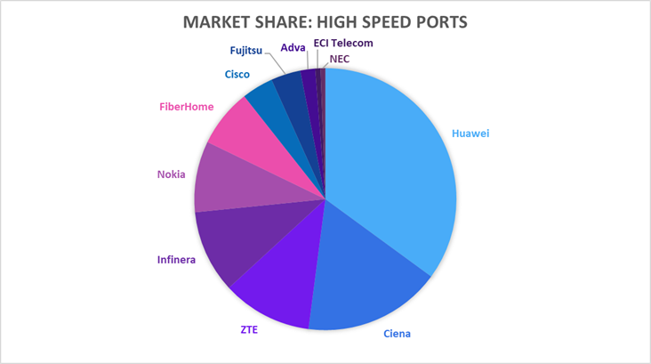 在光網(wǎng)絡(luò)硬件市場中,2019年排前5位的高速端口公司約占全球市場收入的80%。