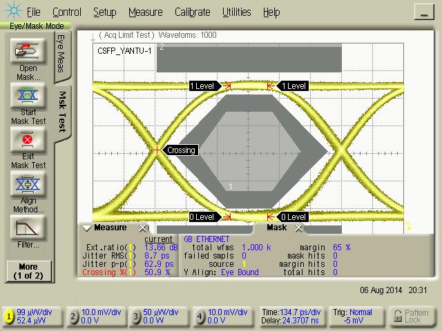 7.極佳的眼圖信號(hào)質(zhì)量,全溫范圍內(nèi)眼圖模板余量可達(dá)40%以上。