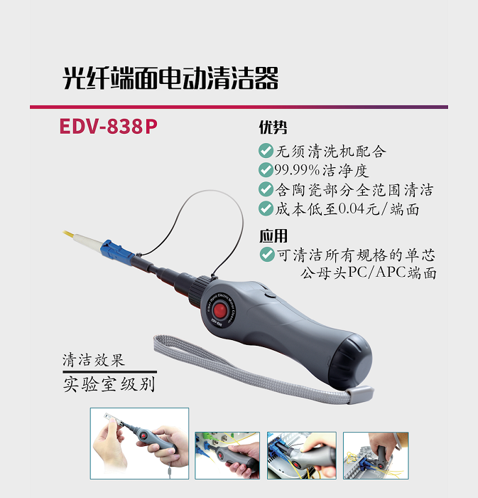 電動清潔器是億天龍十余年暢銷不衰的產(chǎn)品之一。本次將展示全新材料的清潔效果。清潔安全可靠,標(biāo)配的清潔耗材可以清潔4000個端面。