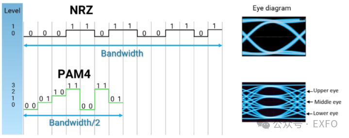 圖1:?NRZ和PAM4二進(jìn)制電平及對應(yīng)的眼圖。