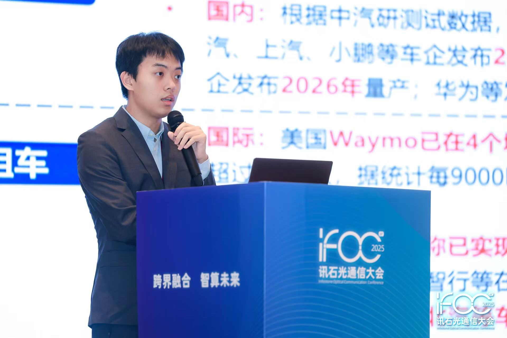 ICC訊 9月8日,為期兩天的IFOC 2025第23屆訊石光通信大會(huì)在深圳國(guó)際會(huì)展中心洲際酒店正式啟幕,會(huì)議現(xiàn)場(chǎng)氣氛火熱。大會(huì)首日下午,由海創(chuàng)光電商務(wù)總監(jiān)王青云主持專題論壇四——《車載光通信與傳感融合發(fā)展》舉行,信通院、長(zhǎng)飛公司、優(yōu)迅股份、AEye、烽火通信、南方科技大學(xué)、群發(fā)光芯等院校與企業(yè)的專家骨干齊聚一堂,圍繞車載光通信與傳感領(lǐng)域的技術(shù)突破、產(chǎn)業(yè)趨勢(shì)及應(yīng)用落地展開深度探討。
