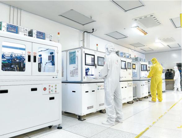 云嶺光電生產(chǎn)車間內(nèi),自研光通信芯片正在下線。