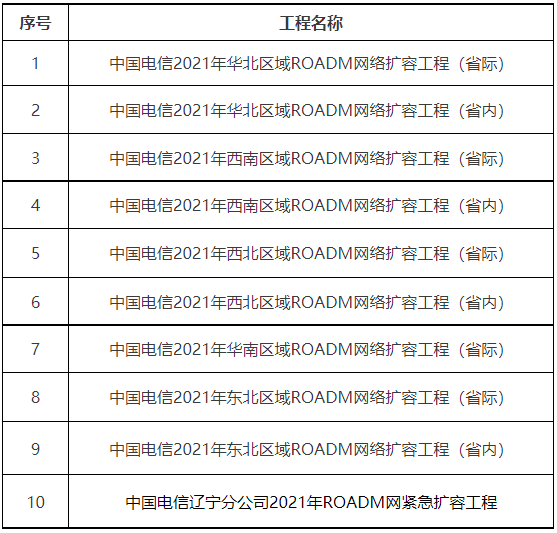 來自中國電信官網(wǎng)消息,中國電信ROADM設(shè)備(2021年)集中采購項目擬采取單一來源方式采購,單一來源采購供應(yīng)商為華為技術(shù)有限公司和華為技術(shù)服務(wù)有限公司聯(lián)合體、中興通訊股份有限公司、烽火通信科技股份有限公司。