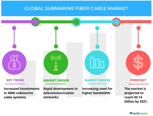 國際市場研究機(jī)構(gòu)Technavio日前發(fā)布報(bào)告稱,到2021年,全球海底光纜市場規(guī)模將達(dá)到51.4億美元,期間年復(fù)合增率接近5%。