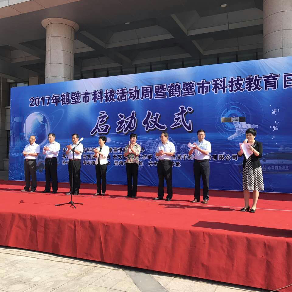 Iccsz訊 5月23日,“2017年鶴壁市科技活動周暨鶴壁市科技教育日活動啟動儀式”在位于鶴壁市國家經(jīng)濟開發(fā)區(qū)的河南仕佳光子科技股份有限公司的研發(fā)樓前舉行。該活動受到了當?shù)卣闹匾暫椭С郑_發(fā)區(qū)黨委書記胡紅軍,市科技局局長郭志鵬,鶴壁市副市長高雅玲以及開發(fā)區(qū)管委會主任李軍顯等出席了此次的啟動儀式。