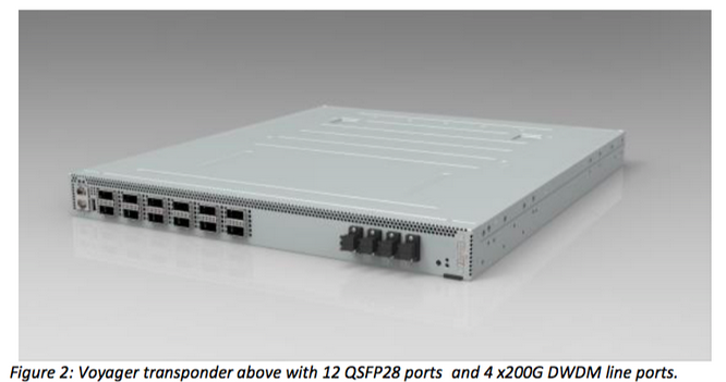 他們指出采用開放式的方法可以創(chuàng)造機(jī)會(huì)提高DWDM的效率,首先Voyager是一個(gè)開放的單機(jī)架單元DWDM設(shè)備,在線路側(cè)具有八個(gè)100 Gbit/s客戶端和四個(gè)200 Gbit/s 16QAM(正交幅度調(diào)制),能夠支持地鐵數(shù)據(jù)中心互連和長途部署。