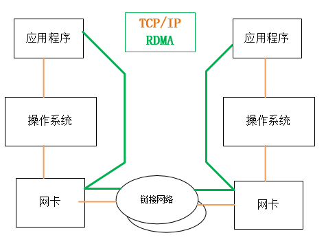 (綠色表示RDMA的工作路徑,橙色表示不具有RDMA功能的工作路徑)