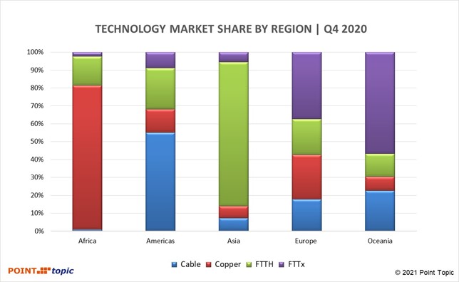 Figure 4. Share of fixed broadband subscribers by region. Source – Point Topic.