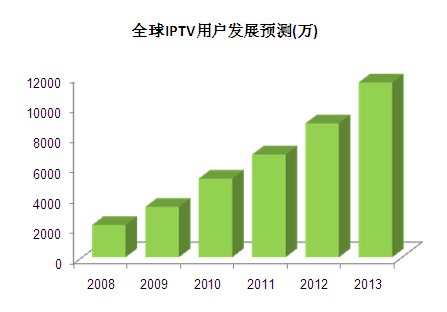 盡管受到金融危機的沖擊,IPTV仍然保持增長狀態(tài),到2013年用戶將達到11560萬,收入增長至580億。來自iSuppli 公司數(shù)據(jù)顯示。