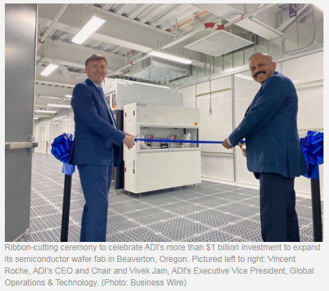 這次設施投資將無塵室空間擴大到約11.8萬平方英尺,并使180納米及以上技術節(jié)點上的產品內部制造幾乎翻了一番。預計它還將創(chuàng)造數(shù)百個新的長期就業(yè)機會,比ADI目前在俄勒岡州的約950名員工大幅增加。