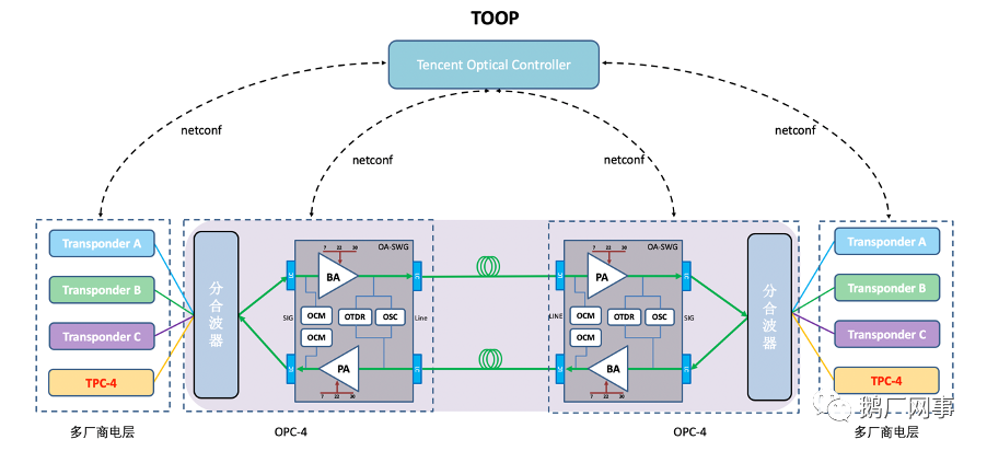 據(jù)了解,2018年11月,騰訊基于光迅定制研發(fā)的開(kāi)放光網(wǎng)絡(luò)OPC-4系統(tǒng)完成硬件開(kāi)發(fā),并聯(lián)合ADVA 600G商用DCI系統(tǒng)進(jìn)行了聯(lián)合適配;