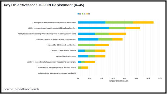 ICCSZ訊(編譯:Nina)Broadbandtrends(BBT)最近對領先的寬帶運營商進行了一項調查,了解他們在網絡中部署10G PON技術的計劃。10G PON可以提供更高帶寬和對稱服務,同時滿足新興5G網絡的帶寬、延遲和致密化要求。