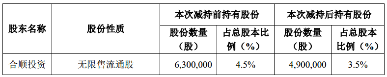 3、截至本公告日, 合順投資已披露的減持計(jì)劃尚未全部實(shí)施完畢,公司將持續(xù)關(guān)注其股份減持計(jì)劃后續(xù)實(shí)施的進(jìn)展情況,并按照相關(guān)規(guī)定要求及時(shí)履行信息披露義務(wù)。