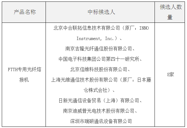 電信FTTH專用光纖熔接機(jī)集采:中電41所等8家企業(yè)入圍
