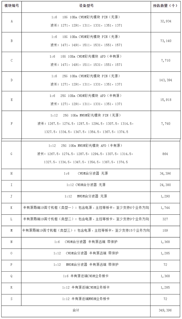 ICC訊 (編輯:Nicole) 湖北移動啟動2020-2021年開放式波分復(fù)用設(shè)備采購項目(招標(biāo)編號:HBXT2020-105069/HBYD20200000548),采購開放式波分復(fù)用設(shè)備,包含彩光模塊、合分波器、半有源局端機框、半有源局端業(yè)務(wù)板卡等共計349,396 個。