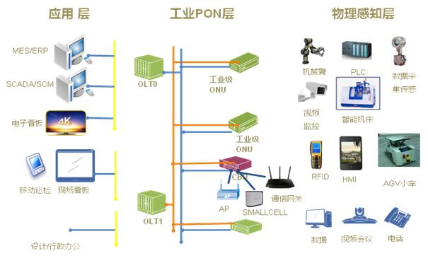 中興通訊率先在工業(yè)制造領域進行新一代工業(yè)PON解決方案,提供系列化的解決方案和產品。工業(yè)PON解決方案已開始各種離散型、流程型企業(yè)中實現數據采集、傳送、監(jiān)測和控制應用,同時通過對無線網絡承載實現車間有線無線一體化網絡覆蓋。