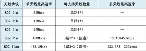 在選擇路由器的時候,用戶應(yīng)該更多的關(guān)注無線協(xié)議和天線數(shù)量,因為它們直接決定了 Wi-Fi 的傳輸速率。由于內(nèi)容過于專業(yè),在這里給大家提供一張表用于查閱。
