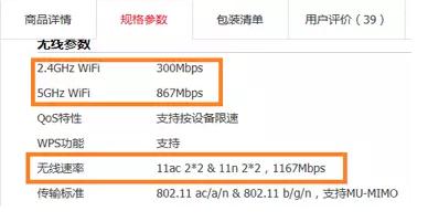 資料中的11ac 2*2 表示支持 802.11ac、2路天線,所以 Wi-Fi 速率為 433.3*2=866.6。11n 2*2 表示支持 802.11n、2路天線, 所以 Wi-Fi 速率為 150*2=300。兩者合計1167.6(千兆級)四舍五入約為 1200Mbps。華為宣傳的“千兆WiFi”、“千兆無線路由”、“11AC 技術(shù)”,指的就是這個。