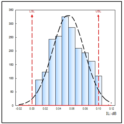 光迅科技通過(guò)大量數(shù)據(jù)中心綜合布線(xiàn)項(xiàng)目的積累,已經(jīng)掌握多模超低損耗MPO的生產(chǎn)工藝,推出的多模超低損耗MPO連接器插入損耗分布如圖1所示,并已經(jīng)形成批量供貨能力,可以支持客戶(hù)的大型數(shù)據(jù)中心的建設(shè),為客戶(hù)提供更優(yōu)質(zhì)的產(chǎn)品,增強(qiáng)客戶(hù)的數(shù)據(jù)中心的競(jìng)爭(zhēng)力。