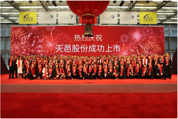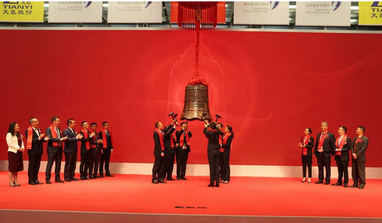 短暫的合影后,上市寶鐘徐徐落下,敲鐘儀式開始。敲鐘代表天邑股份董事長李俊畫女士、天邑股份董事李俊霞女士、成都市大邑縣委書記李燎先生、廣發(fā)證券副總裁歐陽西先生、天邑房產董事長李躍亨先生、天邑集團董事長李世宏先生六位共同敲響開市寶鐘。天邑股份證券代碼:300504,首日交易漲幅達到了44.03%。訊石在此祝賀天邑康和股票上市發(fā)行儀式圓滿成功,祝愿天邑股份上市后蒸蒸日上,宏圖大展。
