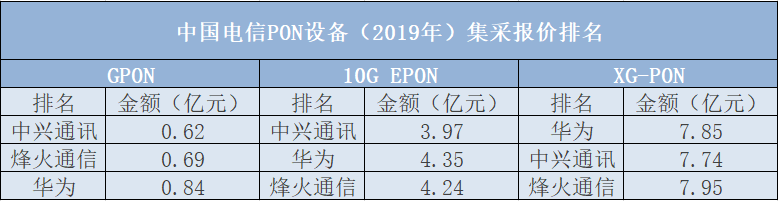 ICC訊(編輯:Aiur)3月25日消息,中國(guó)電信公布了PON設(shè)備(2019年)集采項(xiàng)目結(jié)果,項(xiàng)目中GPON、10G-EPON和XG-PON三種設(shè)備標(biāo)包全部由中興通訊、烽火通信和華為獲得。