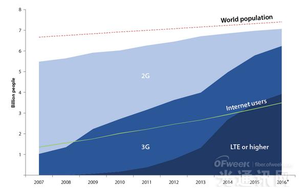 全球先進的移動寬帶網(wǎng)絡(LTE)在過去三年迅速增長,覆蓋了全球近40億人口或者全球53%的人口。