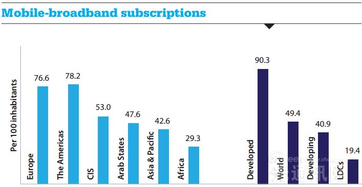 歐洲、美洲以及獨立國家聯(lián)合體區(qū)域擁有最高的固定寬帶普及率。