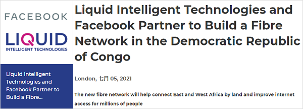 ICC訊(編譯:Nina)據(jù)外媒 Light Reading 消息,Liquid Intelligent Technologies(前身為 Liquid Telecom)和 Facebook 宣布建立合作伙伴關(guān)系,將在剛果民主共和國 (DRC) 建立一條廣泛的長途和城域光纖網(wǎng)絡(luò),該網(wǎng)絡(luò)最終將連接到計劃中的 2Africa 海底電纜。