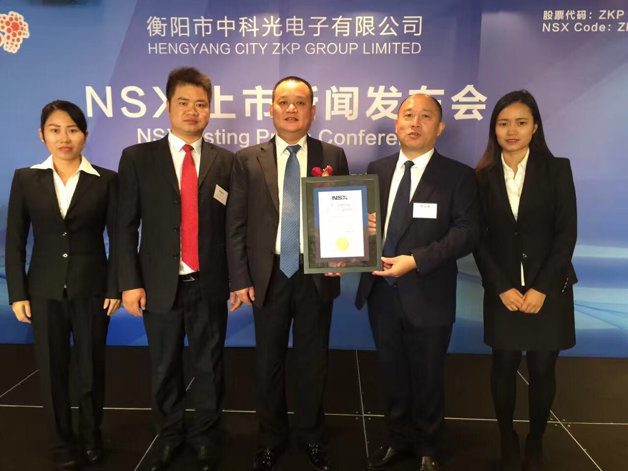 ICCSZ訊 今日上午澳大利亞時間10時許,中科光電子集團(tuán)股票(代碼:ZKP)在澳大利亞國家證券交易所(NSX)成功舉行上市敲鑼儀式暨新聞發(fā)布會。隨著中科光電董事長盧立建敲響開市銅鑼,標(biāo)志著ZKP正式入市交易。NSX交易所領(lǐng)導(dǎo)、中科領(lǐng)導(dǎo)、澳洲獨立董事、展騰領(lǐng)導(dǎo)、澳洲嘉賓和媒體朋友與會。中科股票首日開門紅,開盤價1澳元,以2澳元收盤。同時,在中科光電集團(tuán)旗下湖南衡陽、江蘇沭陽、浙江瑞安三大基地舉行了簡單但隆重的上市慶祝儀式。