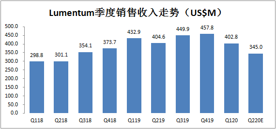 展望2020財(cái)年第四季度,考慮到COVID-19大流行對(duì)公司產(chǎn)品供應(yīng)能力和市場(chǎng)需求的重大影響,持續(xù)的零件供應(yīng)挑戰(zhàn)以及第四財(cái)季前半段馬來(lái)西亞的產(chǎn)能有限,公司預(yù)計(jì)銷(xiāo)售收入將在3.25-3.65億美元之間,非GAAP每股攤薄盈利將在70-90美分之間。Lumentum估計(jì)受COVID-19影響,第四財(cái)季銷(xiāo)售收入減少超過(guò)9000萬(wàn)美元,非GAAP每股攤薄盈利減少超過(guò)50美分。