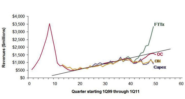 【訊石光通訊咨詢網(wǎng)】根據(jù)Ovum最新報告顯示,從2010年二季度至2011年一季度,電信服務提供商銷售額增長了6%達到了1.82萬億美元;