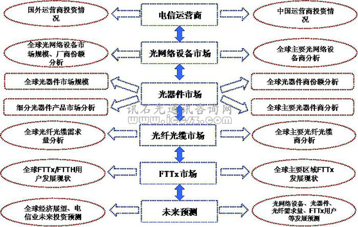 2015年2月,ICCSZ推出新的一年一度的光通信市場(chǎng)調(diào)研報(bào)告《全球光通信市場(chǎng)現(xiàn)狀分析及預(yù)測(cè)》。該報(bào)告主要包括2014年全球及中國(guó)光通信市場(chǎng)發(fā)展總結(jié)分析以及未來(lái)五年光通信市場(chǎng)發(fā)展預(yù)測(cè),具體內(nèi)容涵蓋從運(yùn)營(yíng)商、光網(wǎng)絡(luò)設(shè)備商、光器件商到光纖光纜商整個(gè)產(chǎn)業(yè)鏈的分析及預(yù)測(cè)。
