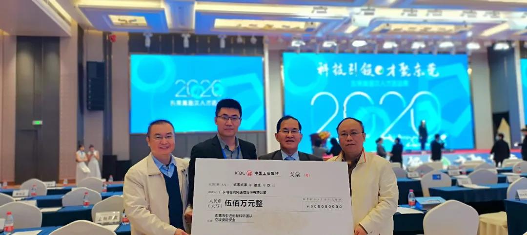 瑞谷光網(wǎng)自2018年開始與華南理工大學(xué)建立產(chǎn)學(xué)研合作,其中“高速光通信芯片智能封測(cè)裝備創(chuàng)新團(tuán)隊(duì)”獲得東莞市科技局正式立項(xiàng)。12月9日上午,瑞谷光網(wǎng)創(chuàng)新科研團(tuán)隊(duì)負(fù)責(zé)人胡躍明教授作為代表在本次高層次人才活動(dòng)周上接受東莞市委副書記、市長肖亞非頒發(fā)項(xiàng)目立項(xiàng)資助支票500萬元。團(tuán)隊(duì)核心成員劉海明博士、袁鵬博士與項(xiàng)目負(fù)責(zé)人肖華平等一同出席見證。