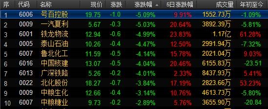 國企混改概念跌幅前十股票